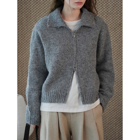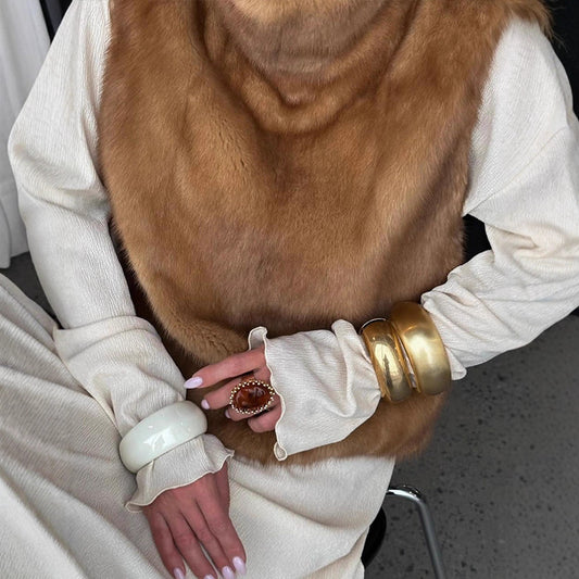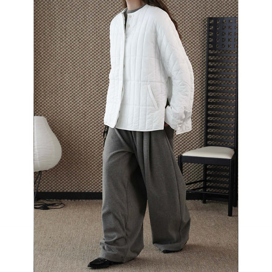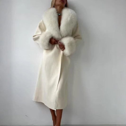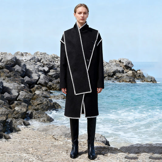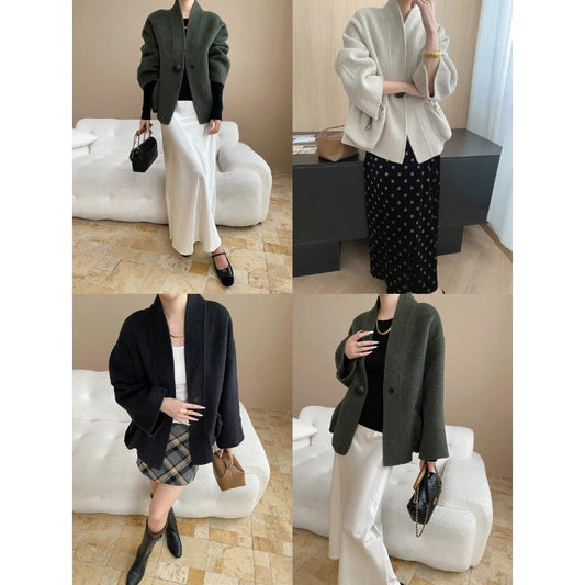 Elegant Double Pocket Design V-Neck Loose Woolen Coat